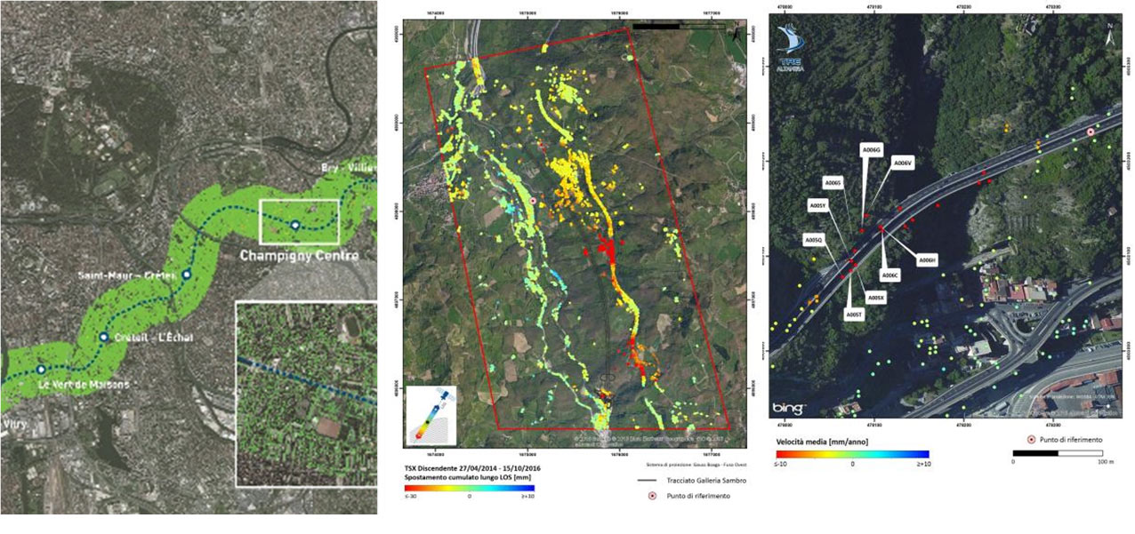 Exemple de mesure temporelle des déplacements du sol et des constructions par imagerie satellite